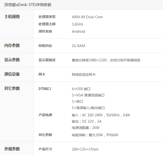瘦終端aDesk:外觀小巧精致,采用ARM架構和A9芯片,性能強勁,處理速度快。